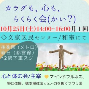 カラダも、心も、らくらく会(かい?)~10月25日(土)~マインドフルネスも…